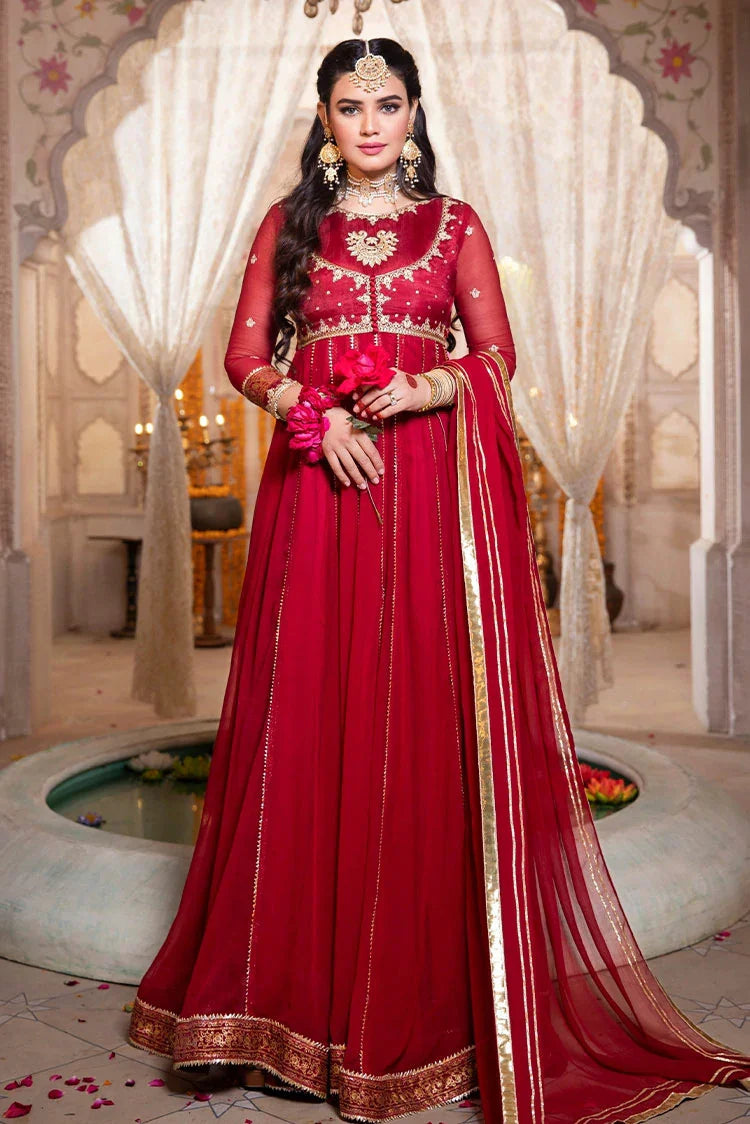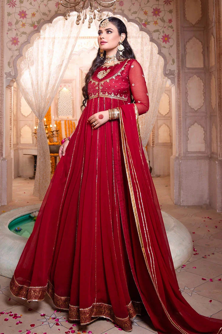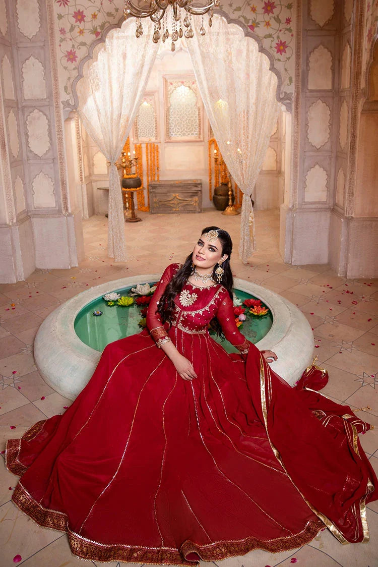 . It Comes With Red Chiffon Dupatta, Heavily Embellished With Lappa And Gotta Work, Which Makes This Signature Piece Stand Out The Crowd.