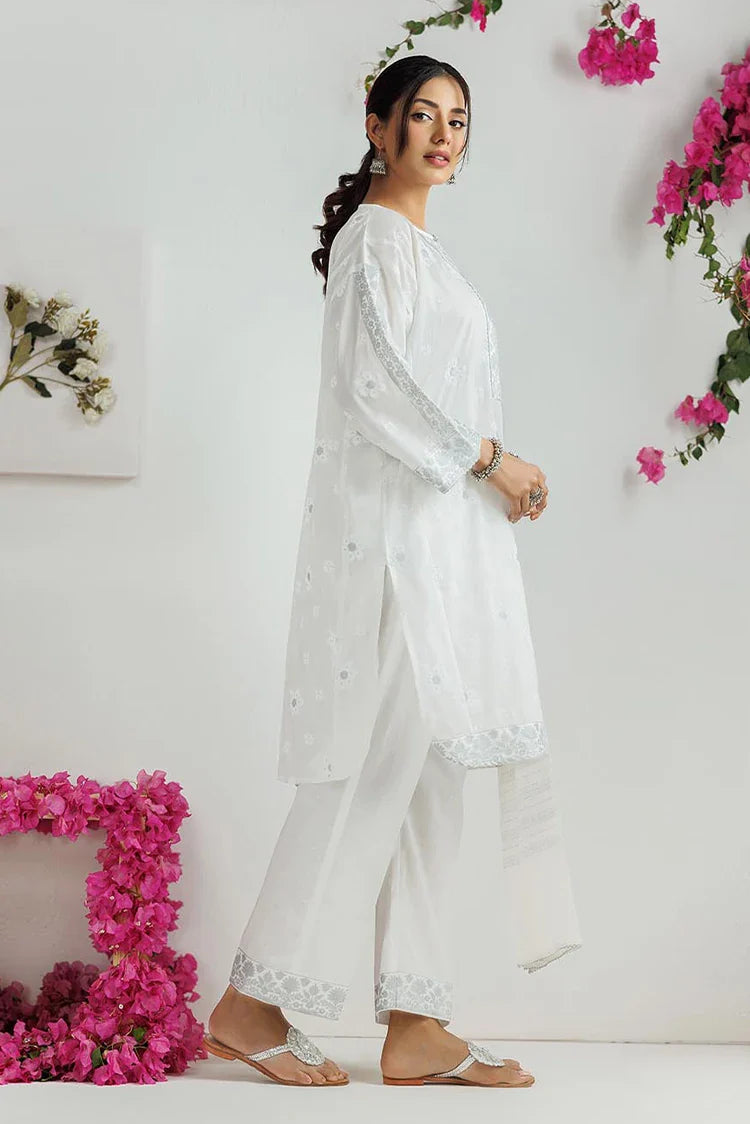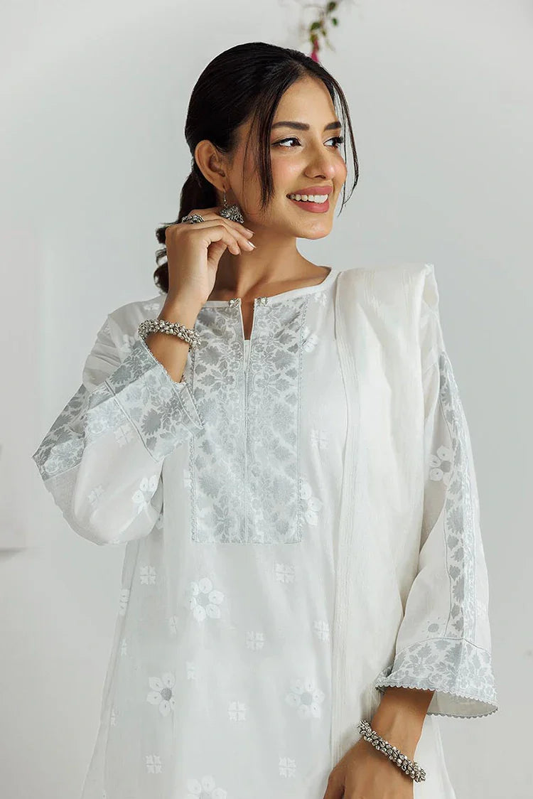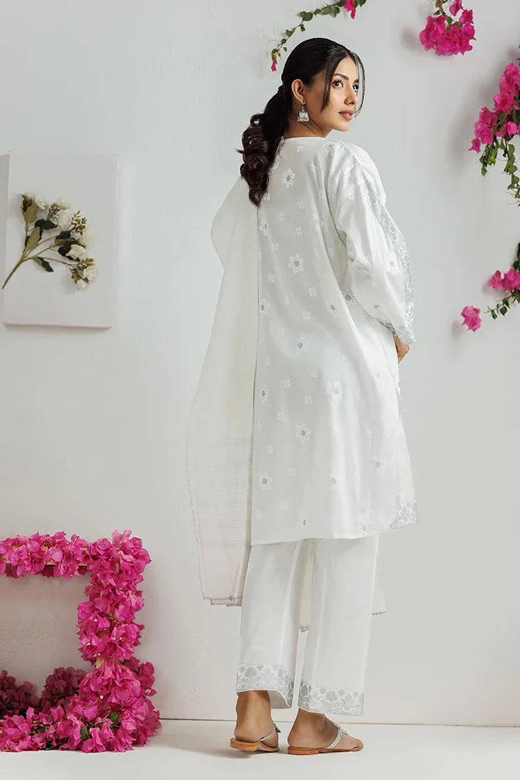 LAD-03170 | White & Silver | Casual 3 Piece Suit | Cotton Lawn Printed