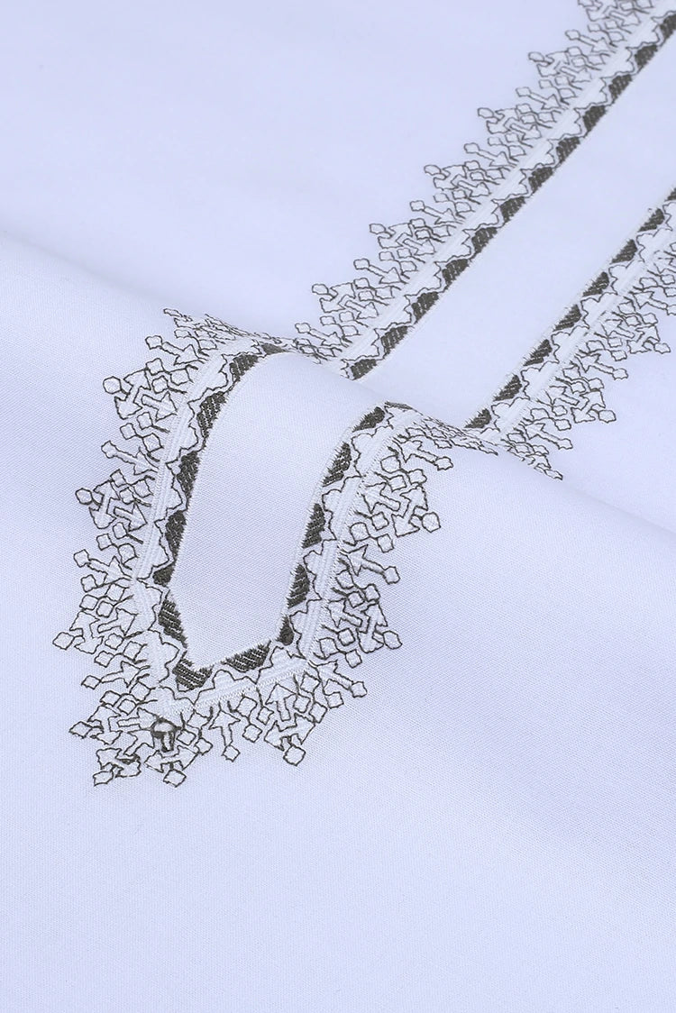 Fabrich - Men's Embroidered Unstitch Kameez Shalwar - White