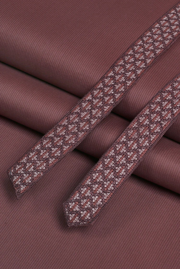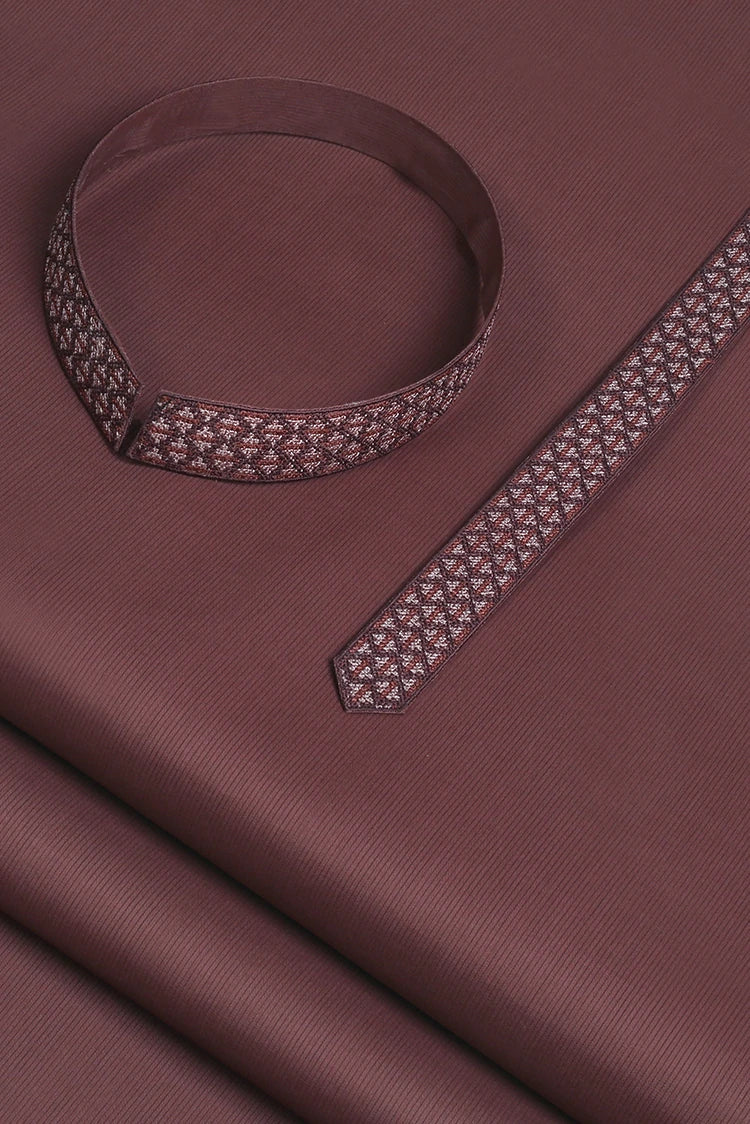 Fabrich - Men's Unstitch Textured Cotton Embroidered Kurta - Syrup
