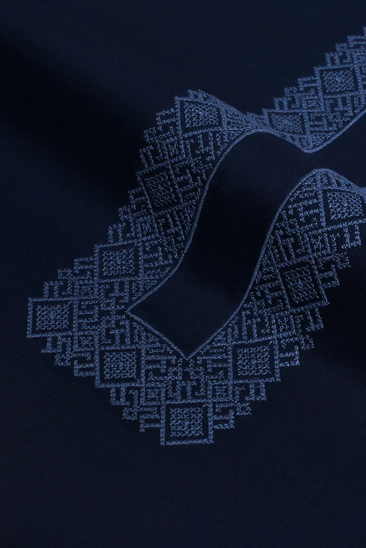 Fabrich - Men's Embroidered Unstitch Kameez Shalwar-Navy