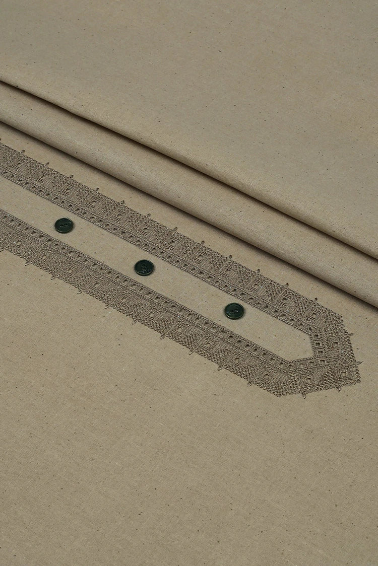 Fabrich - Men's Unstitch Embroidered Khaddar Cutwork - Fawn