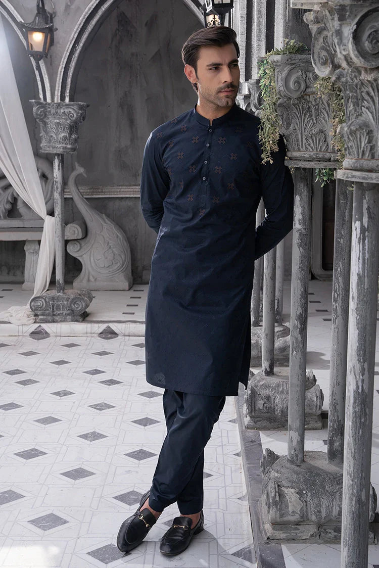 Fabrich - Men's Unstitch Navy Chest Spray Embroidered Kameez