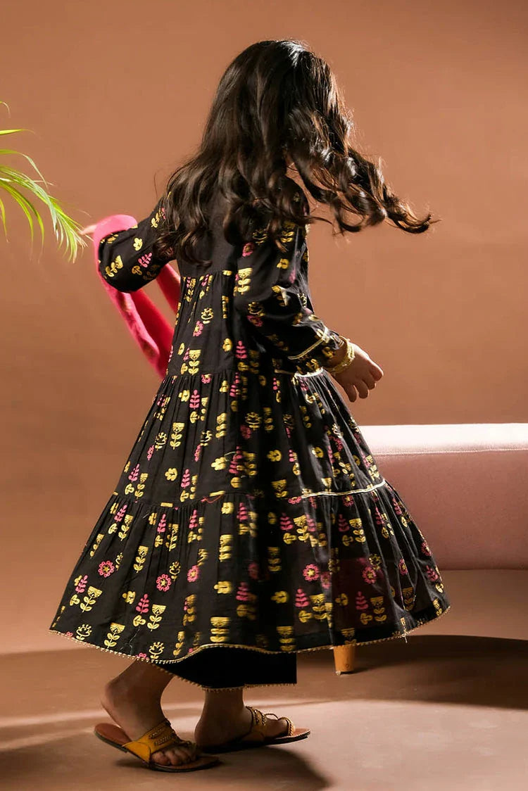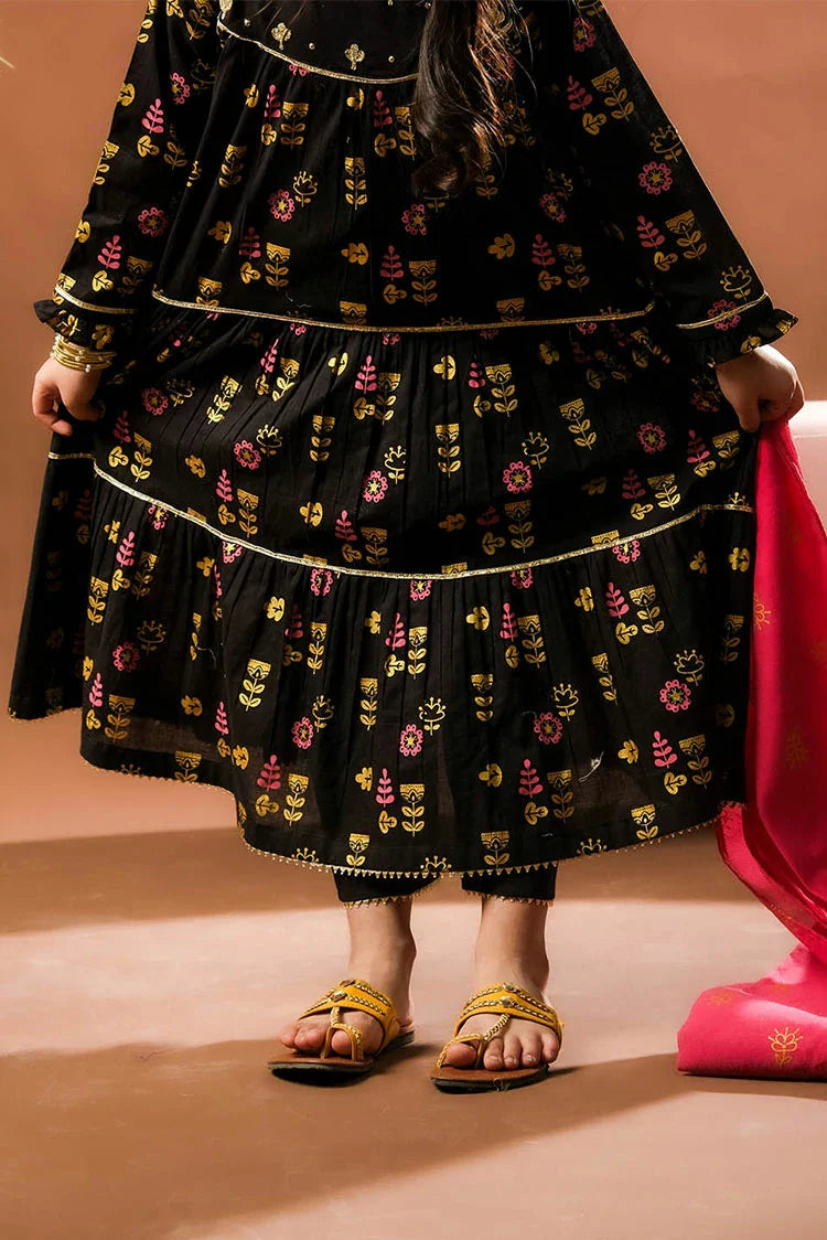 KBD-03387 | Black & Multicolor | Casual Plus 3 Piece Suit | Cotton Glitter Printed