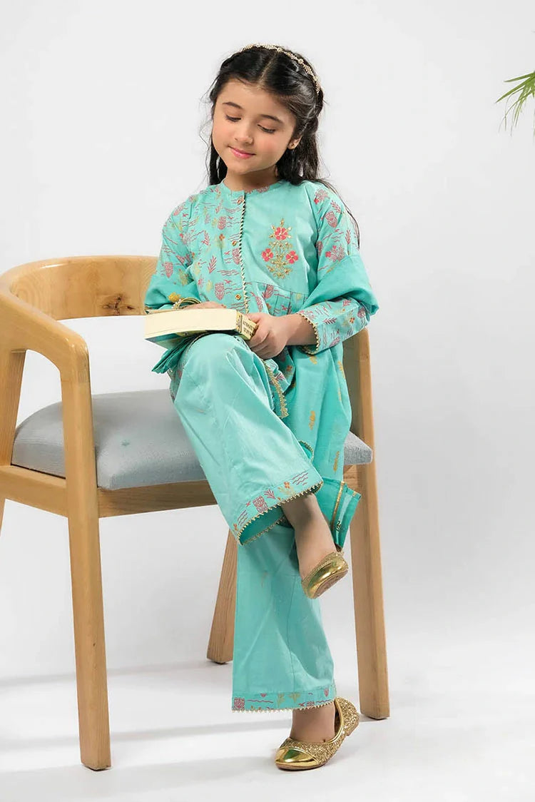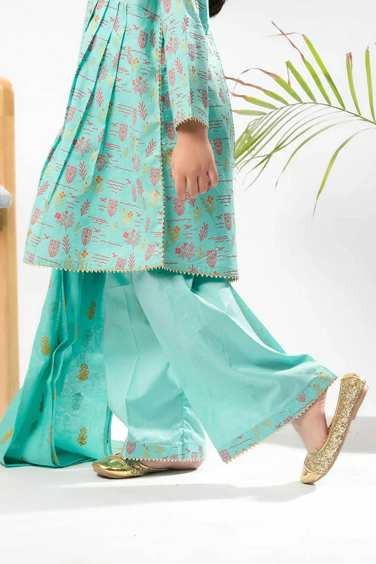 Senorita - Sea Green & Multicolor - Casual Plus 3 Piece Suit - Cotton Glitter Printed - KBD-03369