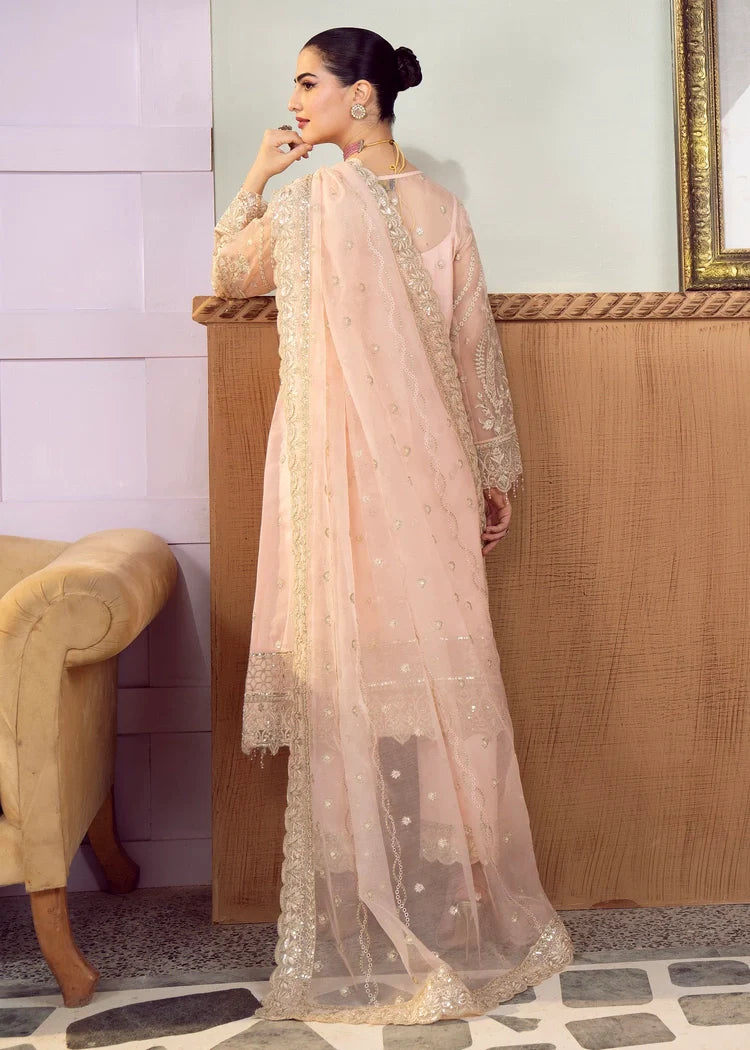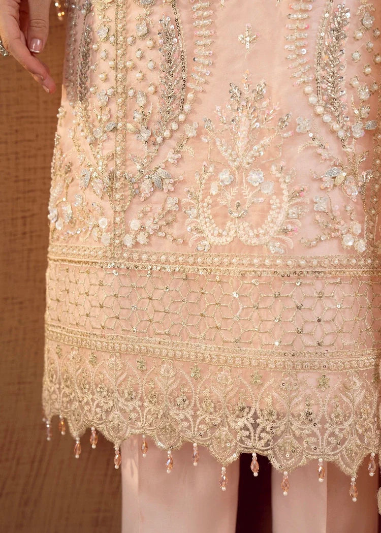 Adda-Worked, embroidered & sequined organza centre panel for front(1pc) Adda-Worked, embroidered & sequined organza left side panel for front (1pc) Adda-Worked, embroidered & sequined organza right side panel for front (1pc) Embroidered & sequined organza sleeves (1pc) Embroidered & sequined organza back(1 yard) Embroidered & sequined organza dupatta(3yard) Embroidered & sequined organza border for front (1yard) Embroidered & sequined organza border for back (1yard) Embroidered & sequined organza border for sleeves (1 yard) Embroidered & sequined organza border for dupatta (8.66 yard) Embroidered & sequined organza border for trouser Dyed inner shirt lining(2.5 yard ) Dyed raw silk trouser (2.75 yard )
