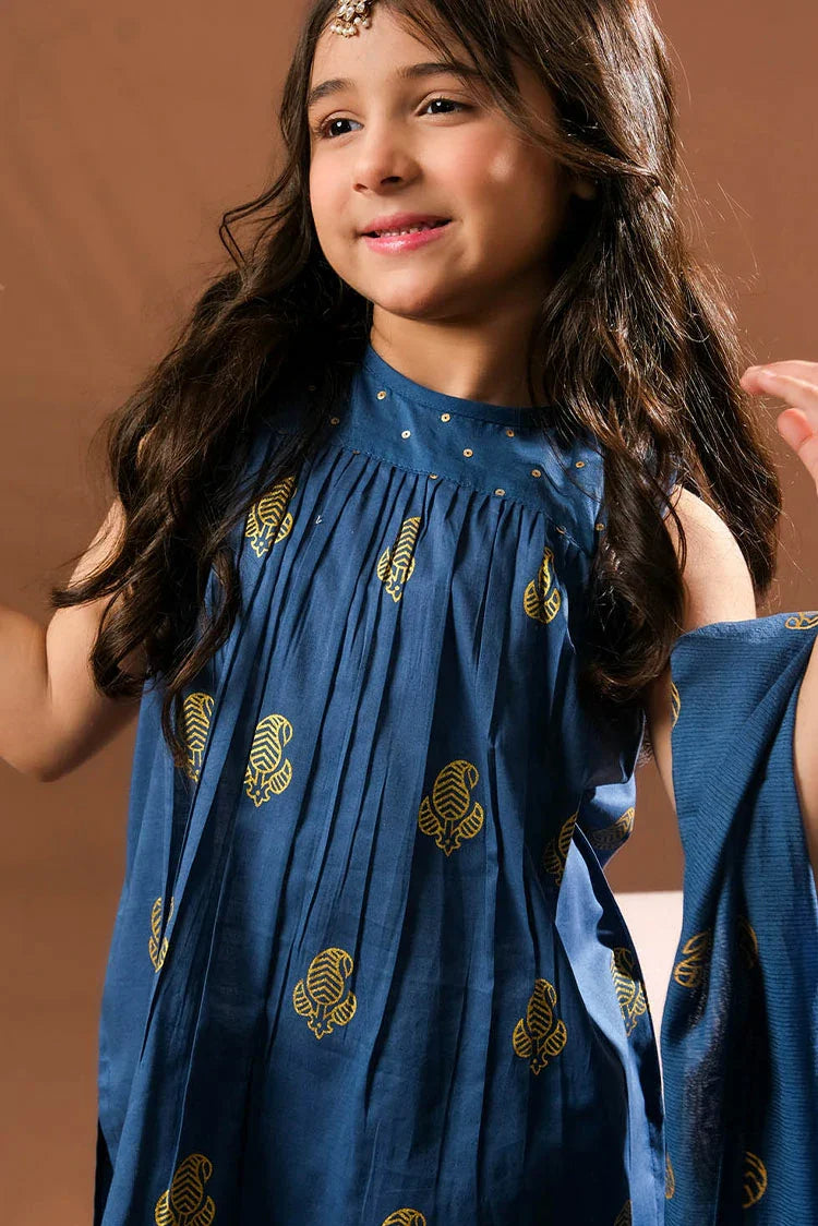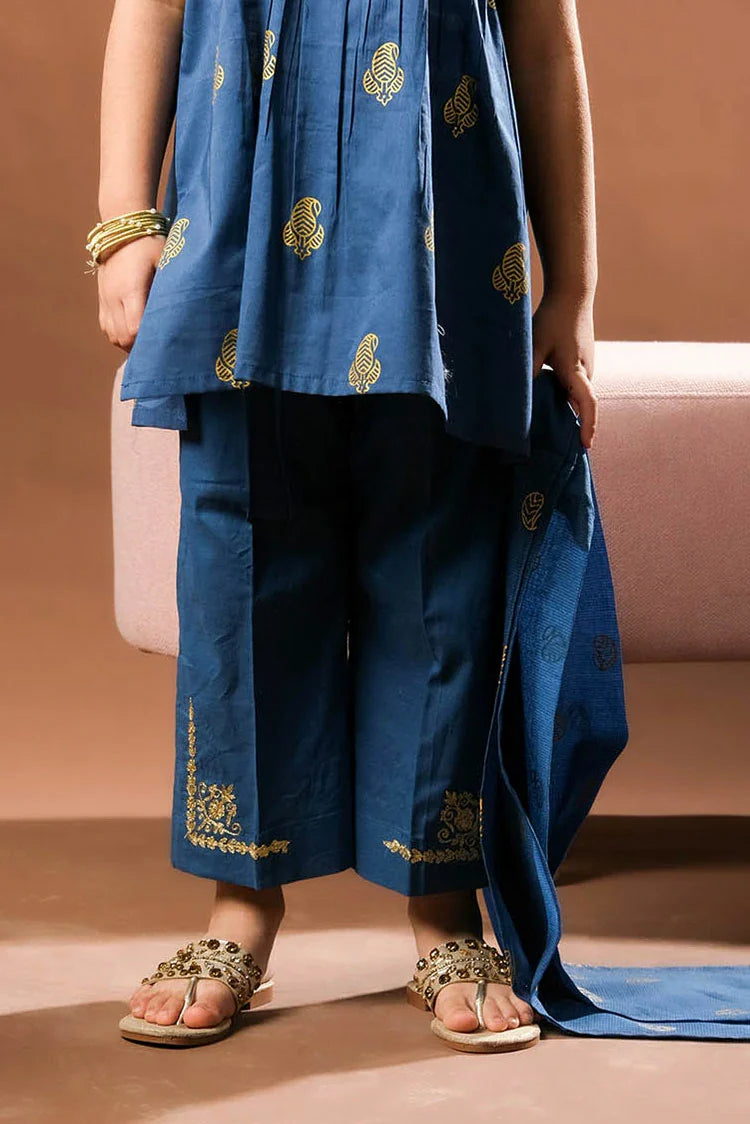 KBD-03388 | Blue & Gold | Casual Plus 3 Piece Suit | Cotton Glitter Printed