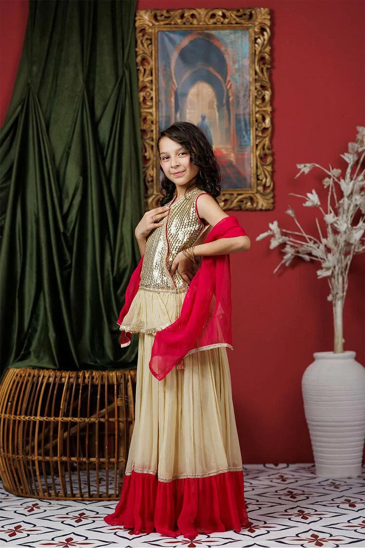 Kids formal clothes | Fawn & Shocking Pink | Formal 3 Piece Suit | Viscose Crinkle Chiffon | KDD-03066