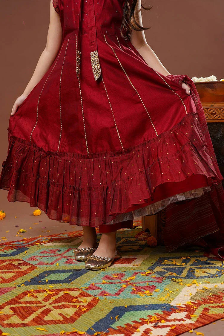 Senorita - Maroon & Gold - Formal 3 Piece Suit - Viscose Chambray Katan - KDD-03296