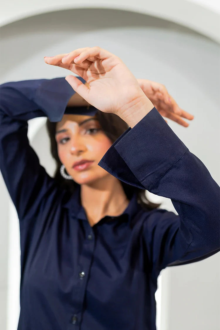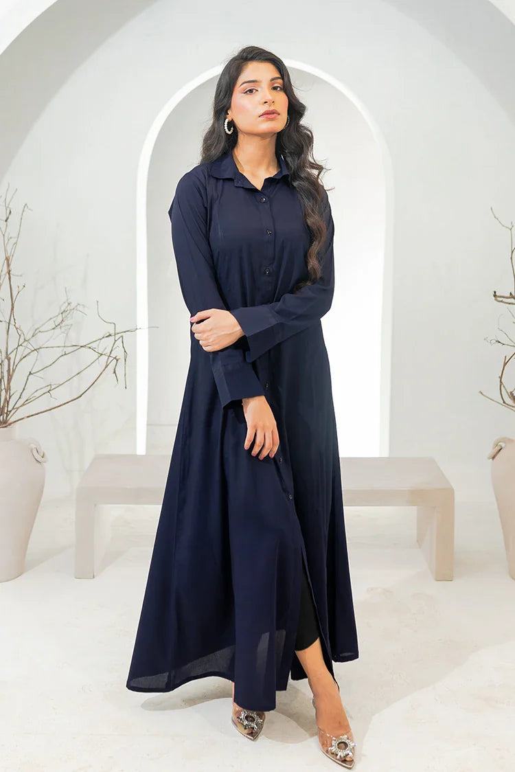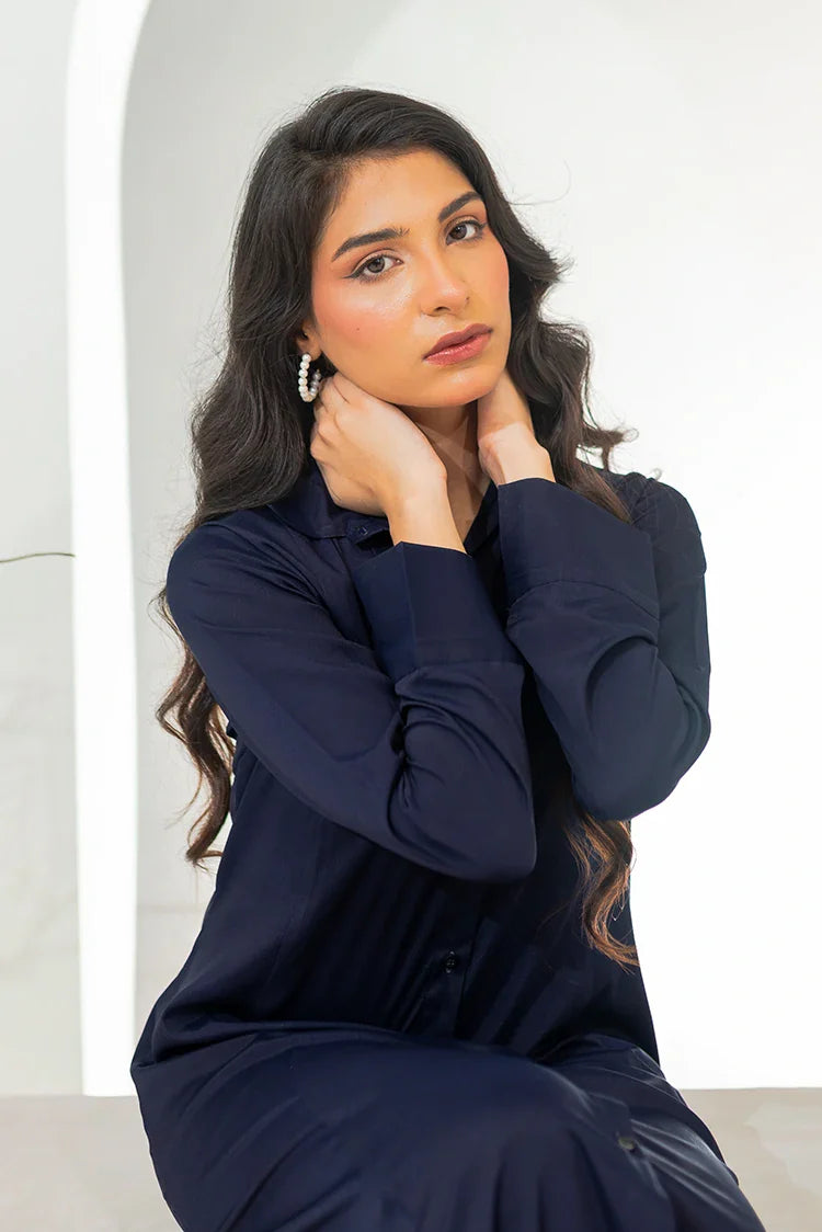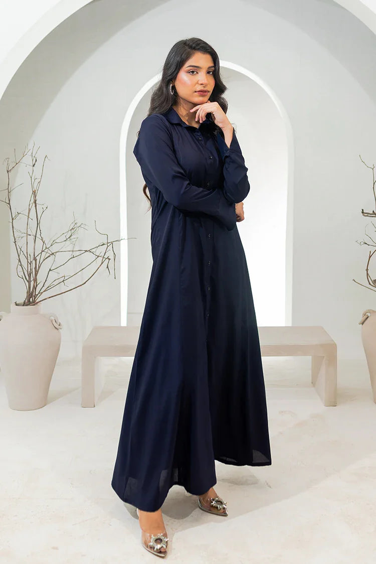 Embrace the epitome of comfort and style with our stunning French Navy Long Dress. Crafted from premium, wrinkle-free crepe fabric. It’s a shirt collar button down long dress with cuffed sleeves.