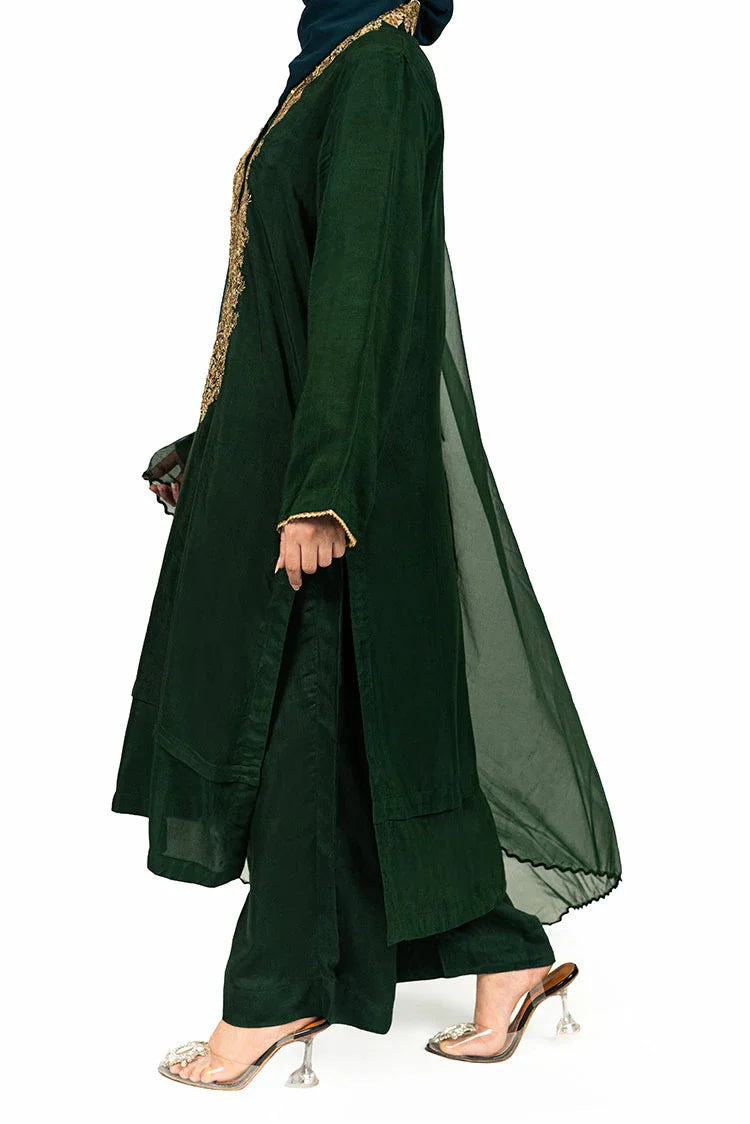 6Teen - 3 Piece - Raw Silk Green Embroidered Suit