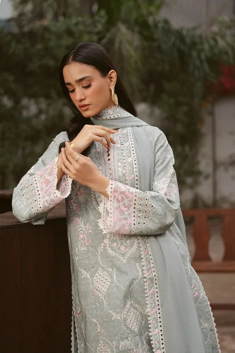 Lawn Steel Gray Digital Printed Embroidered Sleeve 2 Pc