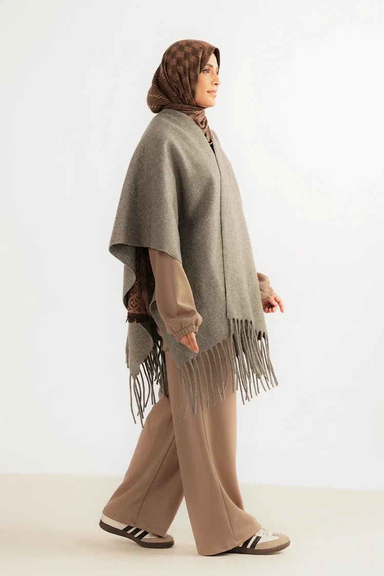 • Cape-style silhouette designed to drape effortlessly over any outfit.