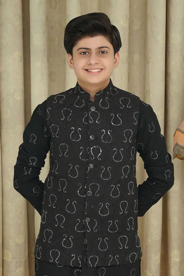 Maqsood Garments - Sequence Embroidery Kid's Waistcoat - Black