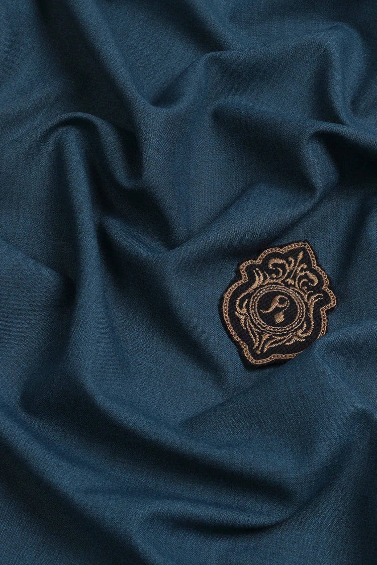 Fabrich - Men's Unstitch Textured Poly Blend Kameez Shalwar - Prussian