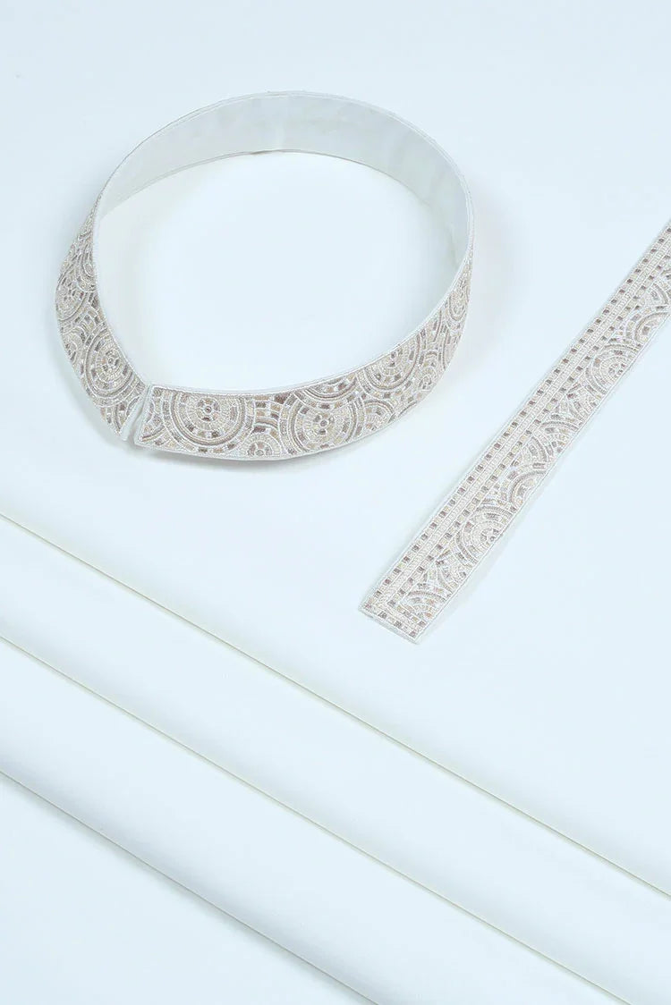 Fabrich - Men's Unstitch Multi-Colored Embroidered Kameez Shalwar - Off White