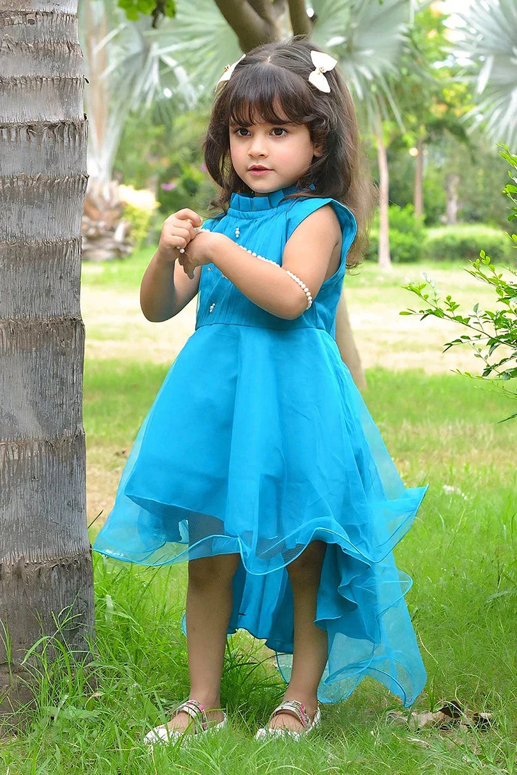 A dreamy net frock in ice blue color, perfect for a graceful and charming look.