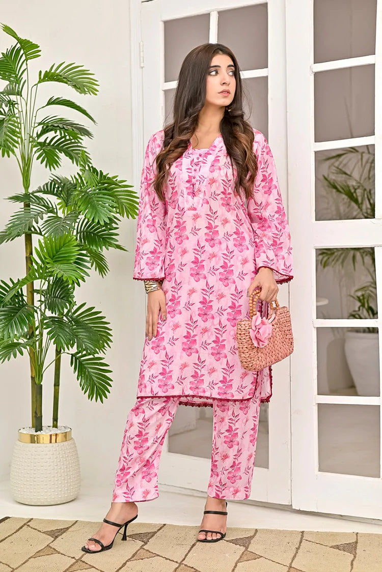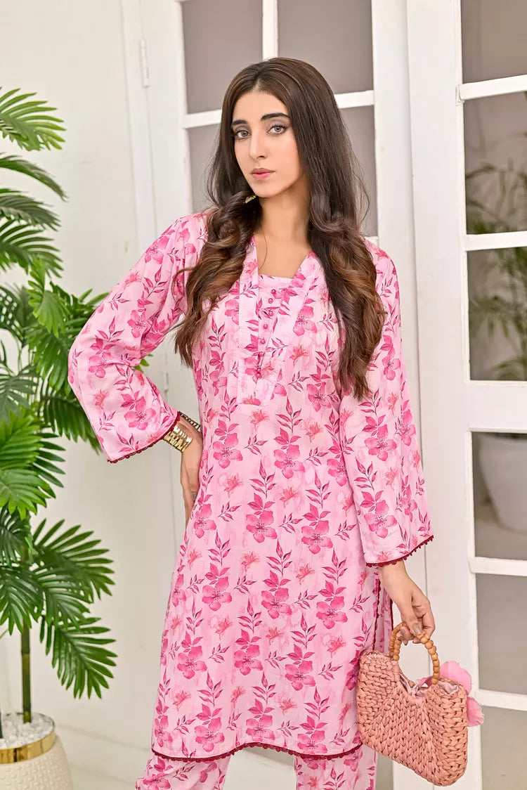 Step into elegance with our  2-piece lawn suit, featuring delicate pink floral prints on a soft pastel base. The breathable fabric and subtle lace detailing make it a perfect choice for everyday sophistication and comfort. Pair it with your favorite accessories for a polished, feminine look.