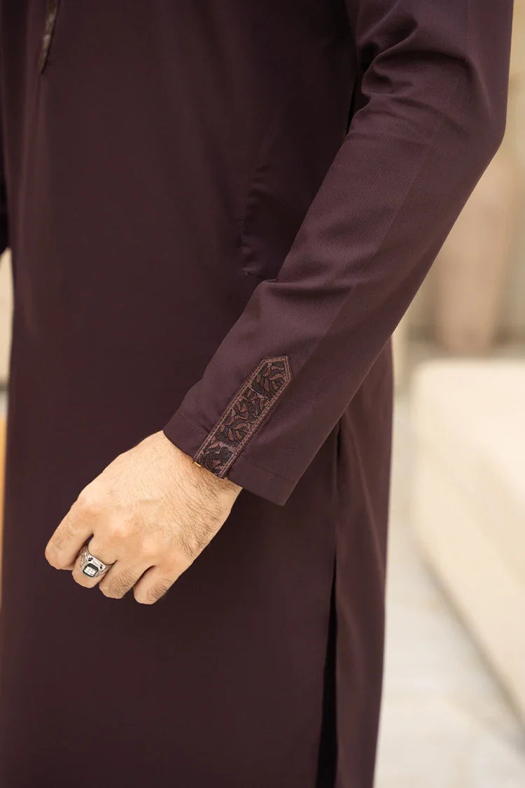 Fabrich - Men's Embroidered Unstitch Kameez Shalwar - Maroon Oak