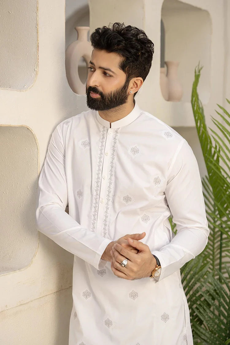 Fabrich - Men's Embroidered Unstitch Kameez Shalwar - Off White
