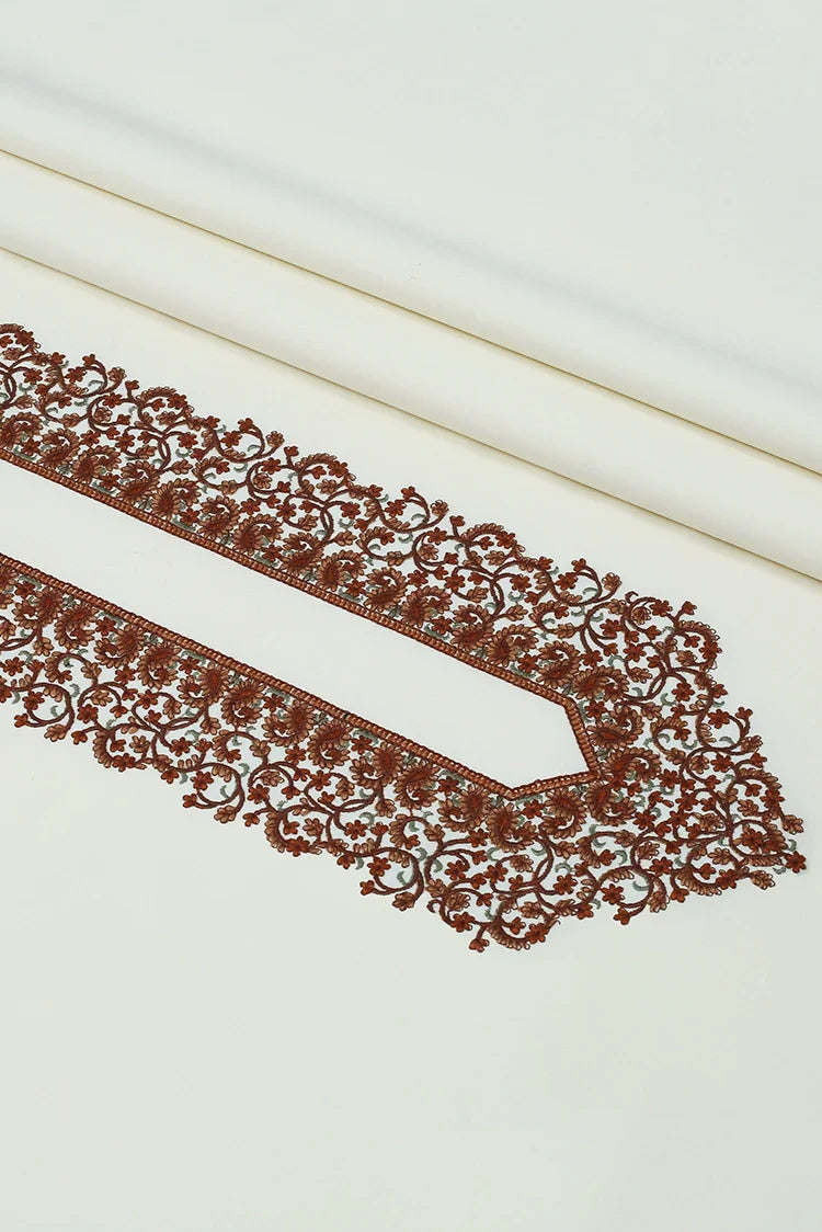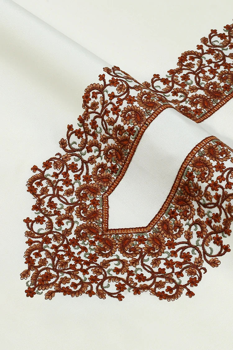 Fabrich - Men's Kashmiri Embroidered Wash 'N Wear Fabric Unstitch Kameez Shalwar - Cream