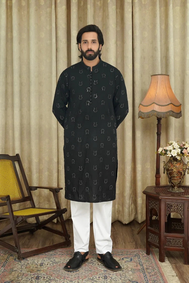 Maqsood Garments - Embroidered Men's Kurta - Black